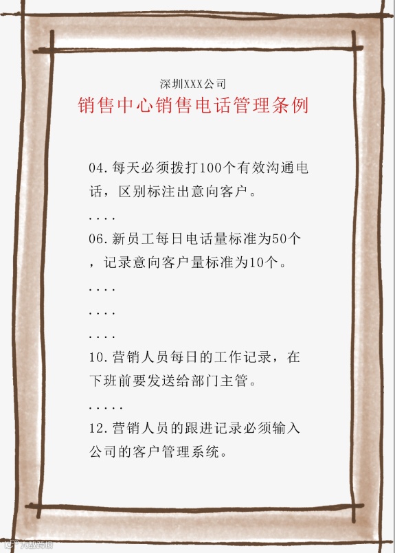 上图是深圳一家企业之前的电话销售管理条例的一部分条款:
