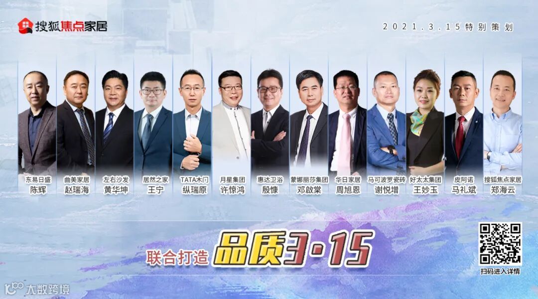 东易日盛集团董事长 陈辉:东易日盛,以科技家装筑就品质传奇,以质量拔群树立行业典型!曲美家居集团董事长 赵瑞海:诚信让消费更放心,品质让生活更美好。左右沙发董事长 黄华坤:不止315,更是365;左右沙发,35年品质如一。惠达卫浴执行总裁 殷慷:引领品质消费,缔造美好人居……更多观点,请点击图片或扫码进入详情页