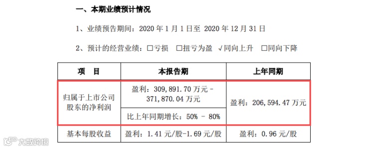 1月11日晚间,东方雨虹(002271.SZ)发布2020年度业绩预告称,预计经营业绩同向上升,公司预计2020年年度实现归属于上市公司股东的净利润为30.99亿元到37.19亿元,同比增长50%到80%。