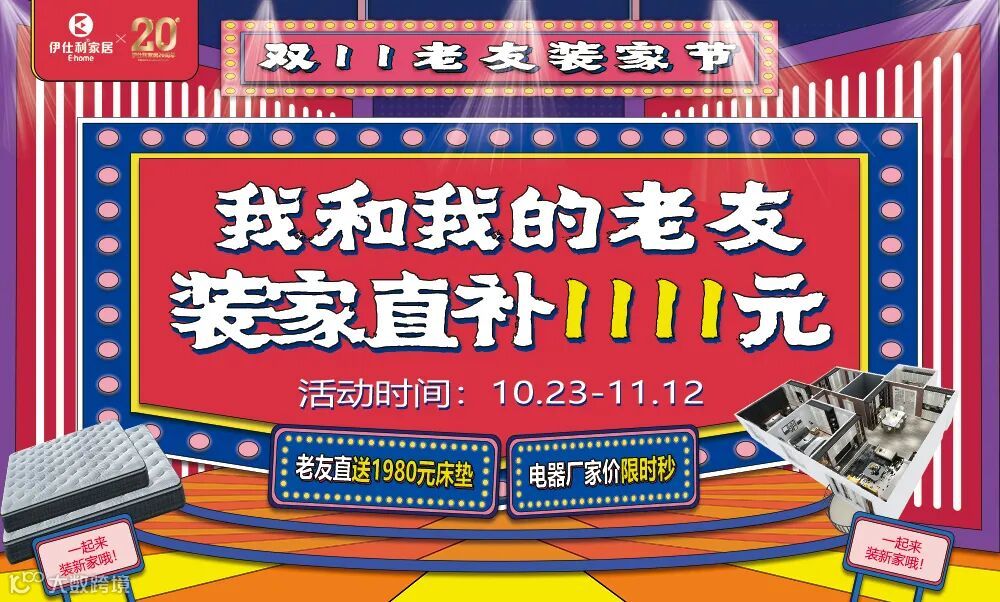 在双十一来临之前,伊仕利家居线上和线下同时备战,重磅推出以“双十一老友装家节——《我和我的老友》 装家直补1111元”为主题的年度大促