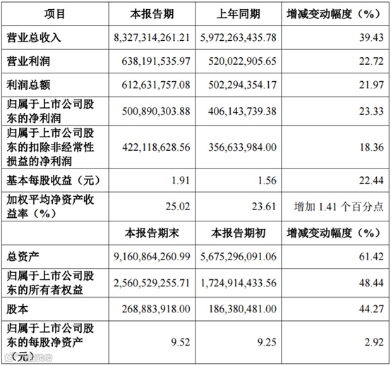 预计归属于上市公司股东的扣除非经常性损益净利润为4.17亿元到4.39亿元,较同期增加1.88亿元到2.11亿元,同比增长82.00%到92.00%。