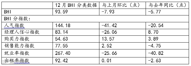 由商务部流通业发展司、中国建筑材料流通协会共同发布的全国建材家居景气指数BHI:2020年12月份全国建材家居景气指数(BHI)为93.59,环比下降7.93点,同比下降5.77点。