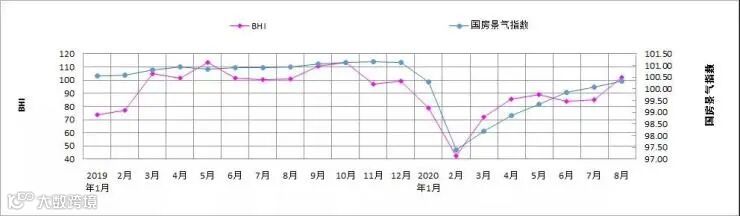中国建材流通协会行业研究部就本期BHI数据解读:8月原本是建材家居市场传统淡季,然而今年8月BHI快速上涨至101.93,重回景气区间,创今年以来新高,且略高于去年同期,随着常态化疫情防控成效不断巩固,全国建材家居市场基本回到正常发展轨道。