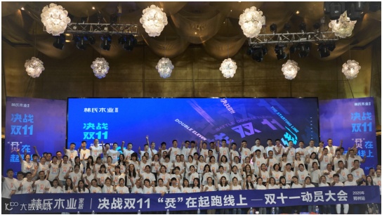 动员会上,林氏木业新零售运营总监宣布了双十一活动营销节奏和核心策略方针:双十一大促活动直降30天,低价不间断,提前购享受双十一优惠;