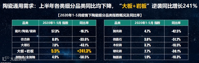 石瓷砖-43.1%,而“大板+岩板”却同比大幅增长241%。这意味着,在消费者层面,岩板已经具有一定的认知。