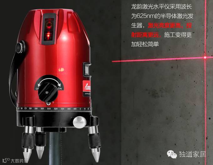 ▼激光投线仪,95元。可以代替传统的弹线。(传统弹线:用一条沾了墨的线,两个人每人拿一端然后弹在地上或者墙上)