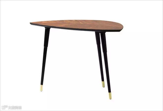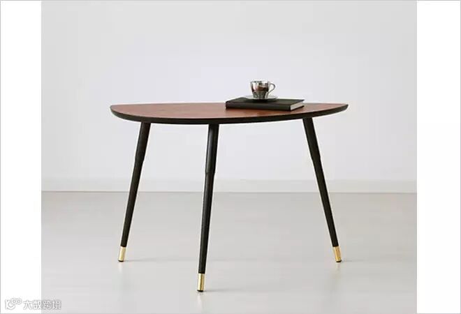 宜家这款茶几桌面不是普通规整的图形,显得更加活泼灵动,而且非常规的四只腿部支撑,而是根据桌面的形状采用三只腿部支撑,打破了空间的布置定律,可以更灵活的摆放。
