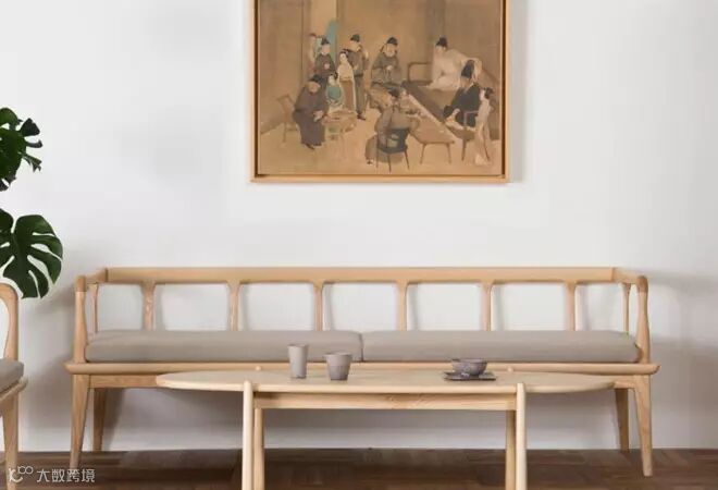 梵几这款挑担茶几灵感来自于挑担的扁担,整体造型为长椭圆形的,打破了客厅方方正正的布局,虽然材料是传统的木质材料,造型却让人耳目一新。