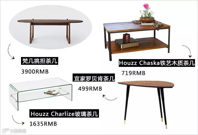 3、Houzz Chaska铁艺木质茶几/719RMB/Houzz官网