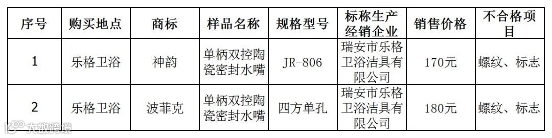3月18日,哈尔滨市消费者协会公布对15个品牌30个型号陶瓷片密封水嘴样品的检验结果。其中,28批次的试验样品能满足国家标准要求,合格率93.3%;2批次不符合国家标准要求,不合格率为6.7%,不合格项目涉及螺纹、标志等项目。