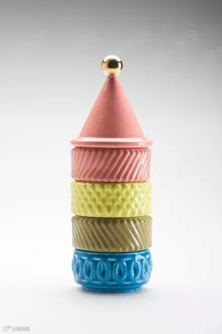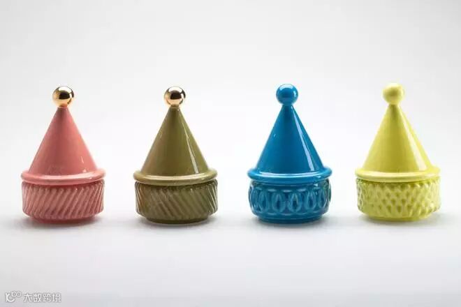 这个具有可爱造型的小容器不但造型优雅而且可以灵活应用。它是由圆柱形元件和设计成尖尖的帽子盖组合而成,并且可以堆叠放置,非常适合收纳珠宝产品,香料、香水等等。