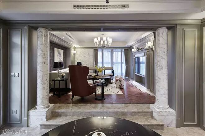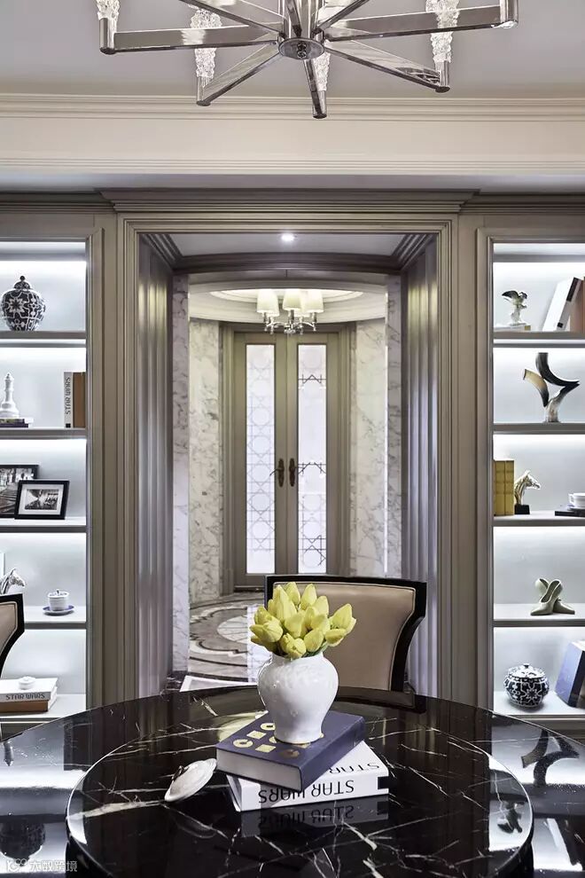 ▲餐厅的右侧是家庭中重要的会客厅,在这里后现代与新古典完美结合,在后现代的基调上加上新古典的家具作为装饰,别出心裁。