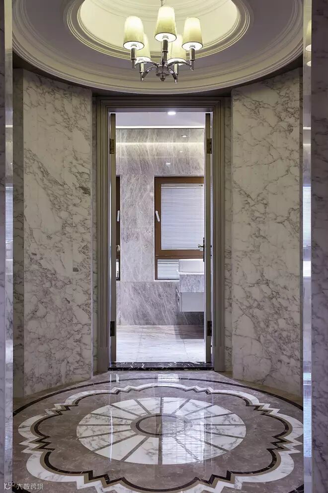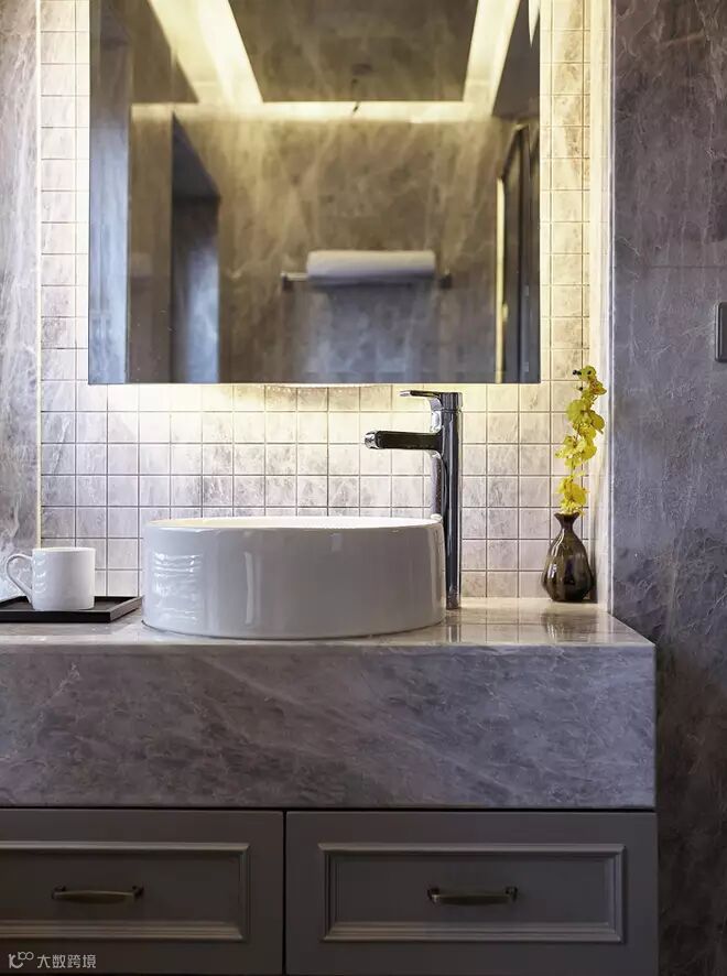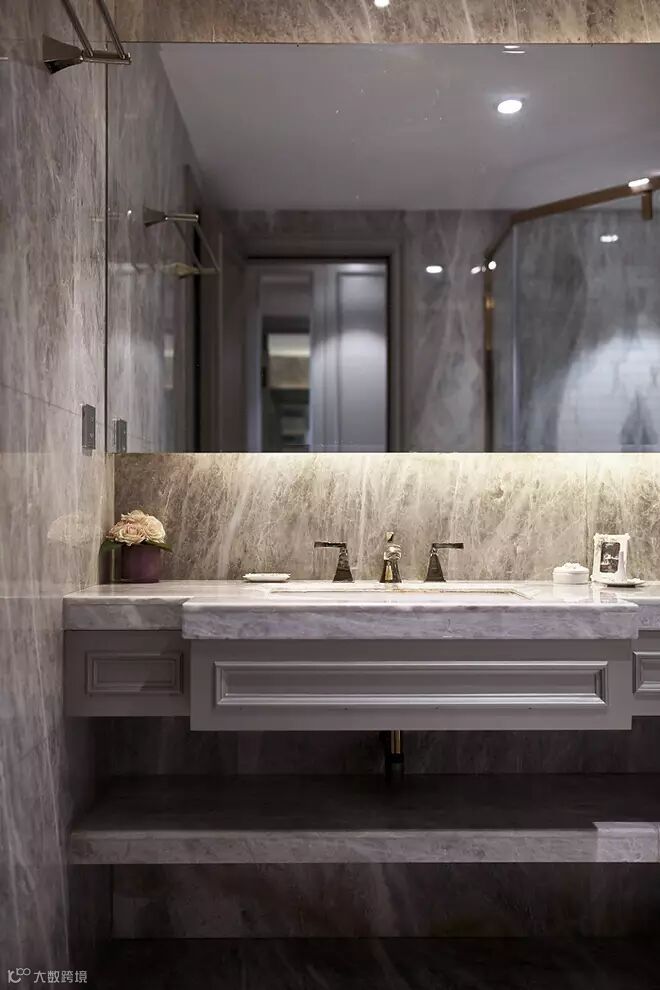 ▲卫生间采用了大量的灰白大理石地板,墙面,桌面,扑面而来的后现代风格,加上新古典元素的抽屉设计。