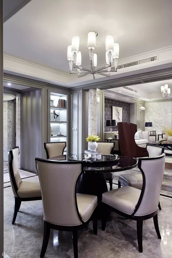 餐厅桌椅选择了黑色与灰色,椅子在现代风格中带着古典的韵味