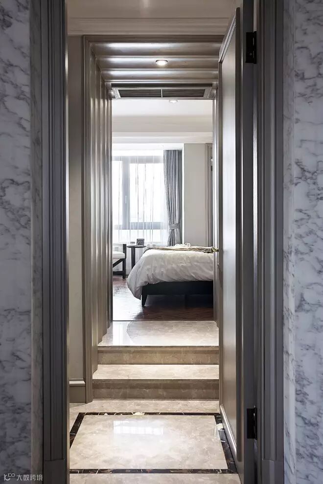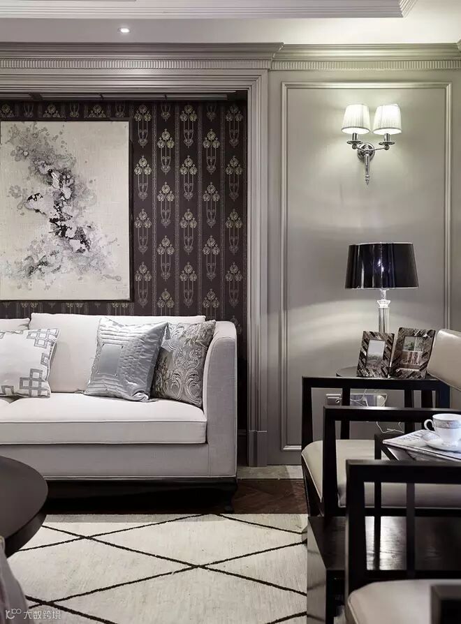 本案原始结构是个小错层的空间,设计手法还是遵循传统的一种半围合式的空间处理方式,将原有的复杂线条及叠级关系,通过空间的转换及面的过渡来简化处理,保留了一种对称的古典空间美学,在视觉上追求的是一种后现代的基调,以素雅的灰色和米白色为主色调;以简易的墙板、石材以及墙纸等常规的居家用材来交错过度,配以一种偏现代风格的冷色调的家具组合,达到一种清爽冷艳却有着高品质的视觉;力图在一个三线的县城,以一种全新的家居形态呈现另一种高端生活方式。