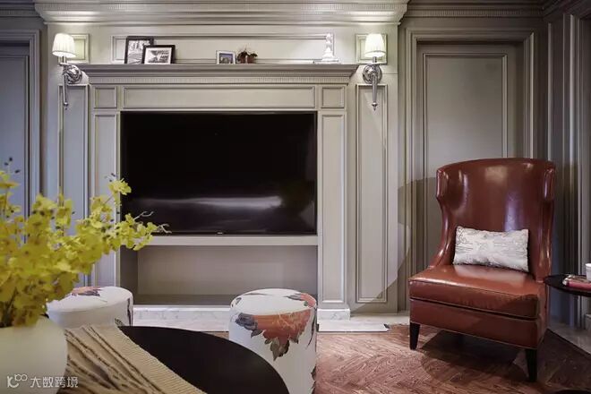 主要用材:香槟灰护墙板、石材,墙纸,胡桃木木地板等常规家居用材
