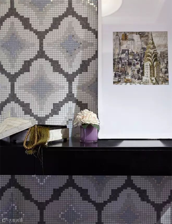 ▲走进大门,一块后现代的窗格元素马赛克背景映入眼球,整体以灰色与白色为基调,灰白相间的瓷砖、大理石墙面为后现代风格做铺垫。
