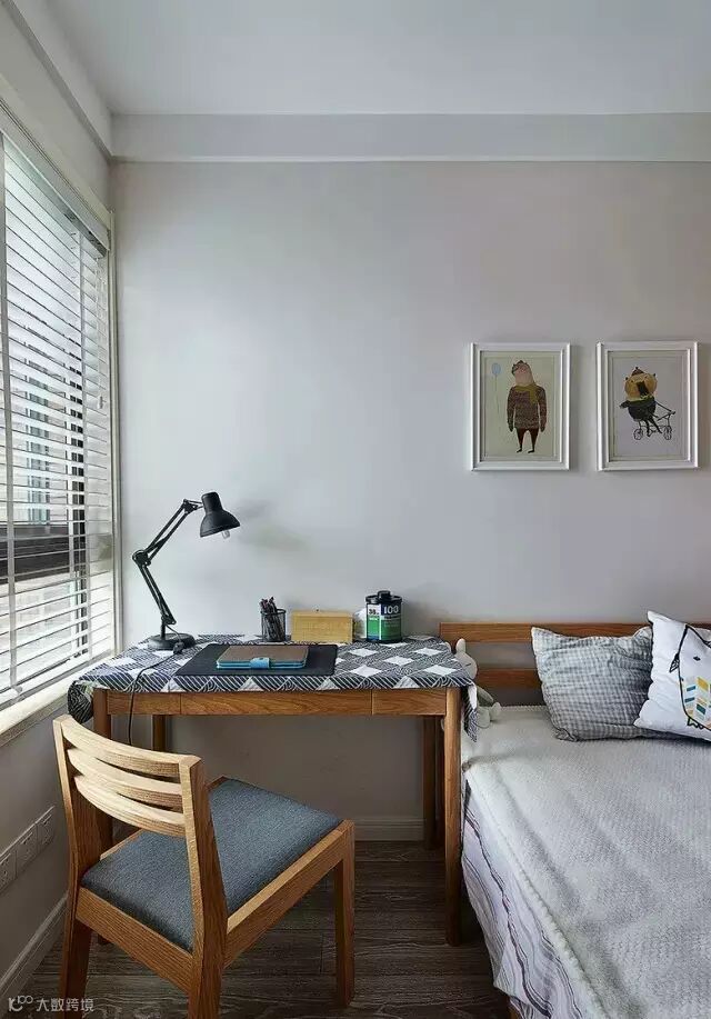 儿童房用原木+棉麻材质的床品打造一个天然的环境,让孩子从小就远离浮华,培养孩子脱俗的气质。