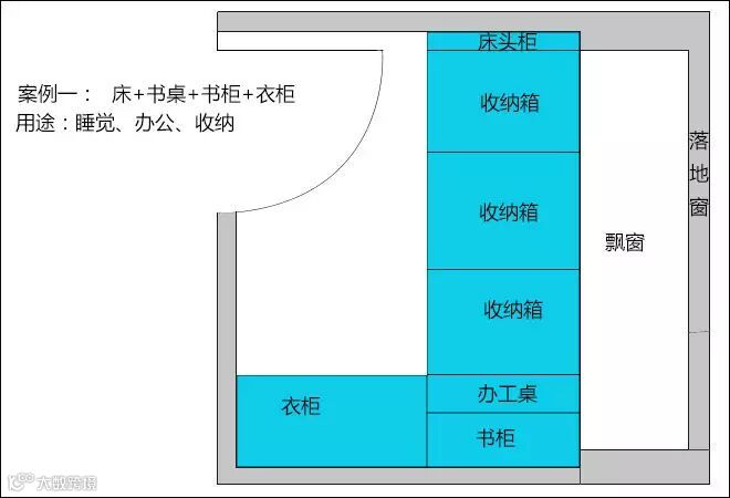 户主需求:房间能够办公、能够睡觉、能够收纳杂物、还能摆放衣物。