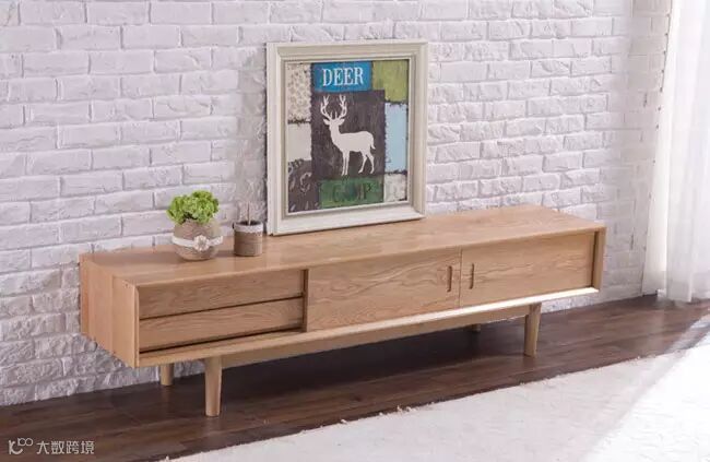 这款电视柜采用100%全实木打造,精选北美进口优质白橡木,后背板是优质桐木,抽屉内测版和底板为优质桐木,使用的木材是未经加工的原木,最大限度保留了木材的原始色彩和质感,没有任何密度板、中纤板、多层板、刨花板等人造板材。表面上的是出口专用漆,台湾大宝NC环保硝基漆(开放式喷涂),非常环保。尺寸大小也非常适合小户型客厅使用打造日式、北欧风。