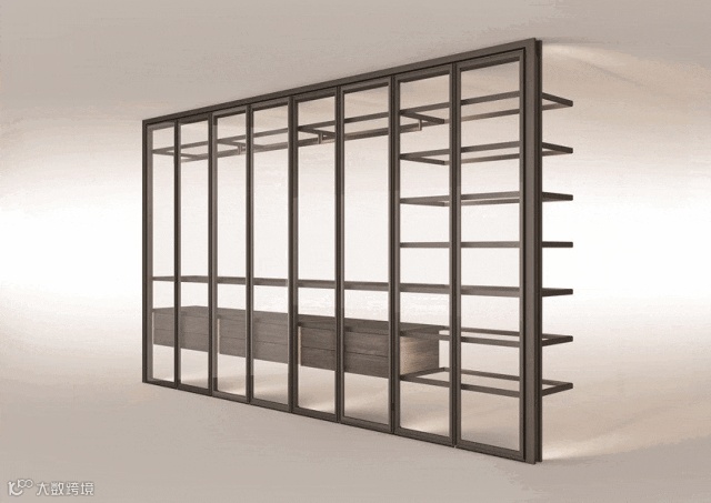 Palo Alto Free 步入式衣帽柜延伸了Palo Alto I-Box的设计。衣柜使用落地柱直接支撑,没有顶板、底板和侧板,透过玻璃柜门可以直接看到“充作背板”的墙体,它可以全方位展现墙体的设计巧思,更具纵深感,也能更加融入卧室的设计风格,灵活多变。