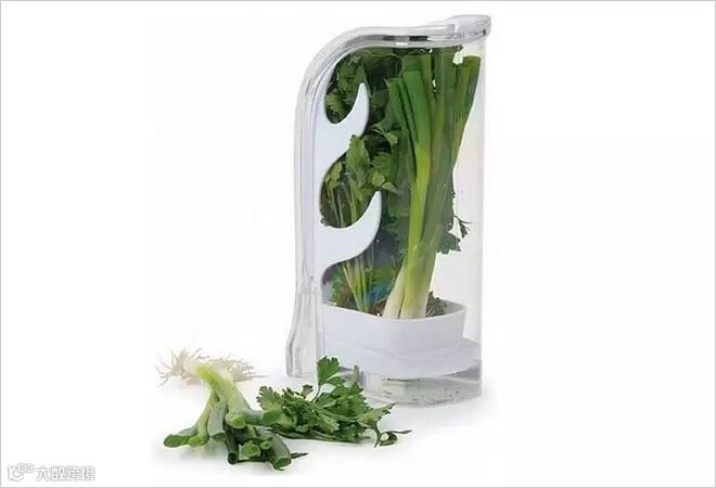 这款保鲜盒是利用把蔬菜的根部放置在保鲜盒隔层上的储藏方式,然后在底部和隔层间的空间中注入水,利用根部的吸收和水分的蒸发提供,保证蔬菜的新鲜度。而且根茎与水是分开的,所以只是接触,没有浸在水中,所以不会腐烂。