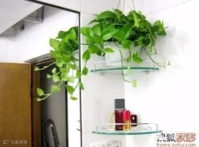 其实这个卫生间的收纳空间还有镜子右面的两个三角小玻璃架,能放一些洗漱用品和化妆用品(见下图):