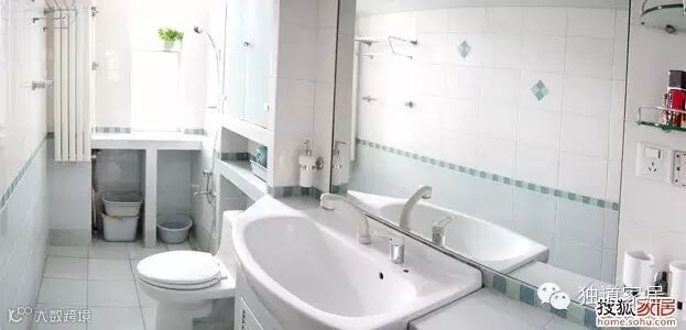 老妈认为,卫生间的成功之处在于它强大的收纳功能,所有的东西不一定是最漂亮的,但一定是最实用、最符合实际的。这也是我们装修时必须要关注的一点。最后奉上老妈家卫生间的全景图: