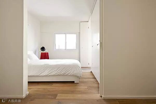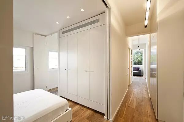 这点【空间大师】也替你设计好了,卧室入口处有一道巨大的推拉门,将门合上之后,卧室立刻变身密闭空间。如果有客人到访,进了大门只会看到一堵白墙。