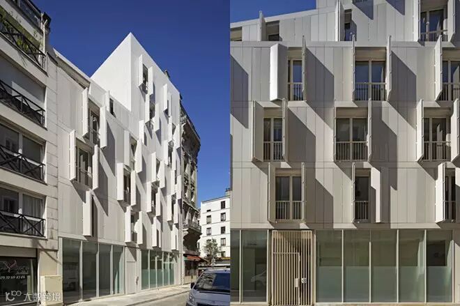 近代百叶窗是美国人约翰·汉普逊1841年发明的,近200年来,这种百叶元素被广泛应用在普通民居和地标建筑之上。像这座巴黎白楼,外立面的百叶窗设计可以调节光线同时充当隐私过滤器,最重要的是能起到装饰面作用,透着一股优雅、冷静的魅力,这让一座普通建筑在美观设计上提升了不少。