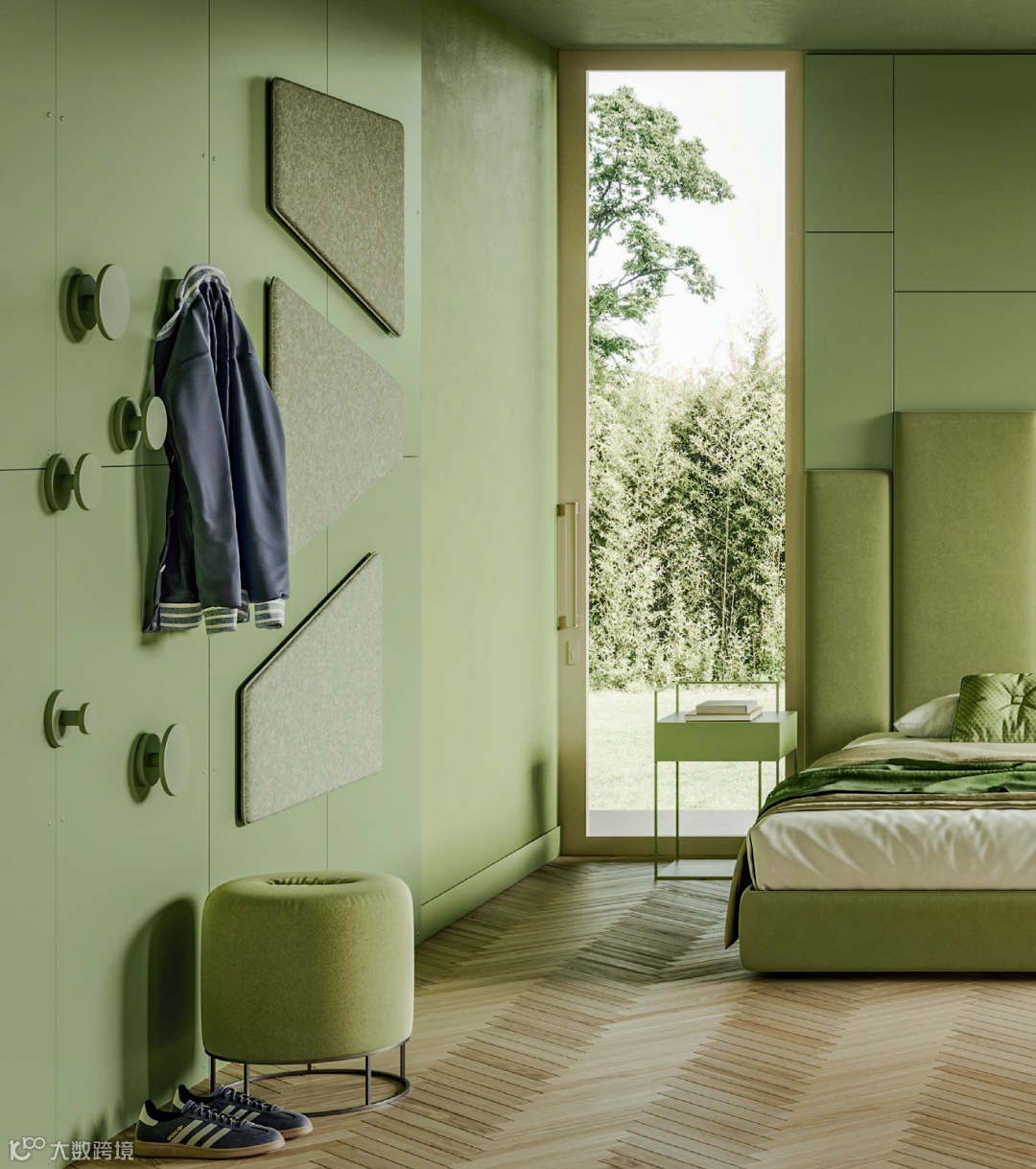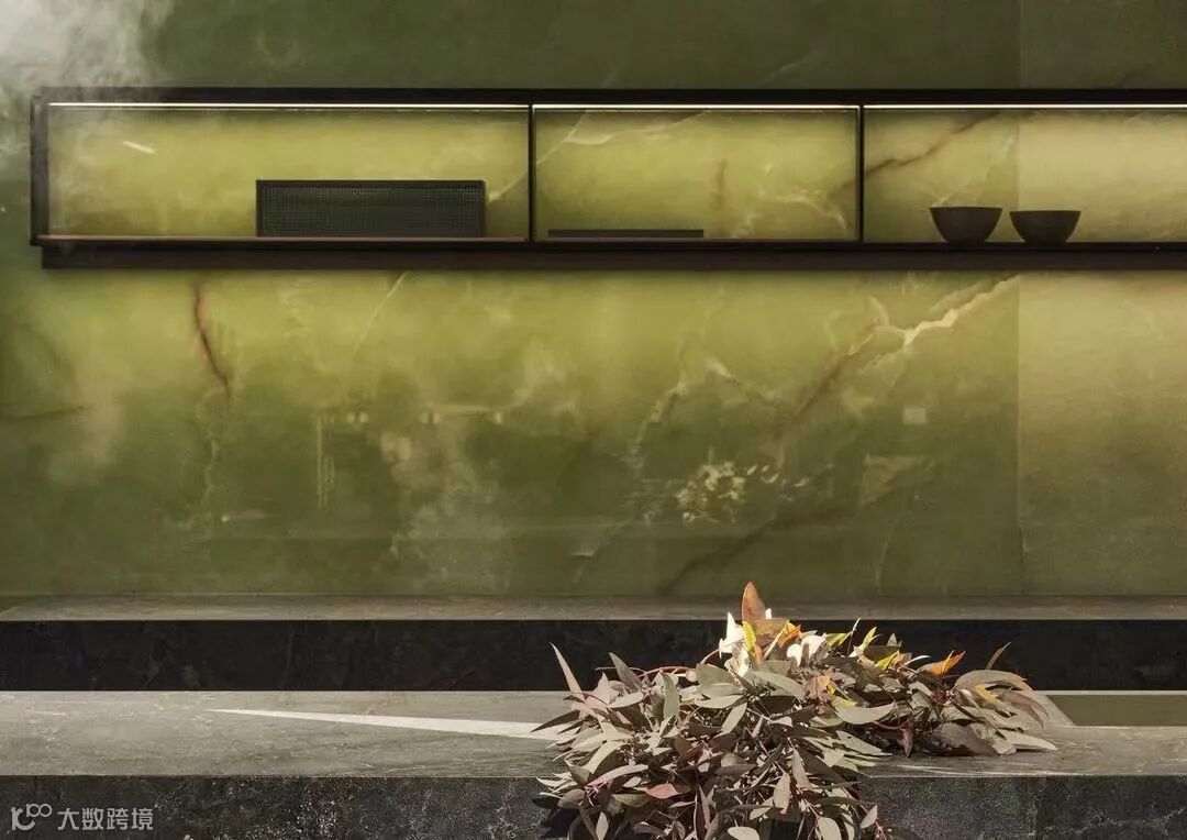 令人备感舒适宁静的植物系色彩让室内空间看起来更充满生机,其中宝石绿色调设计高端奢华,代表着高贵、幸运,运用在室内设计中,更显大气典雅、浑然一体。