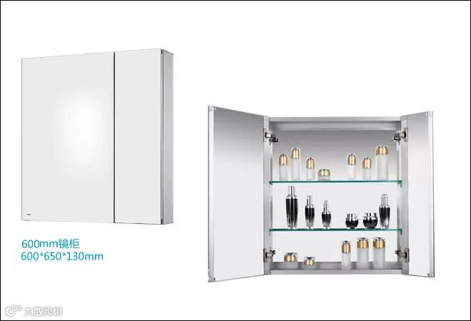 很多卫浴品牌都有在做镜柜,下面这一款是摩恩卫浴的镜柜(主要材质是钢化玻璃、铝合金,玻璃隔板可以调整):