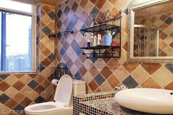用表面有石材质感的仿古彩岩装饰卫浴间墙面,让地中海风格融入了些许美式乡村风格的自然朴实感,也更有文艺气息。