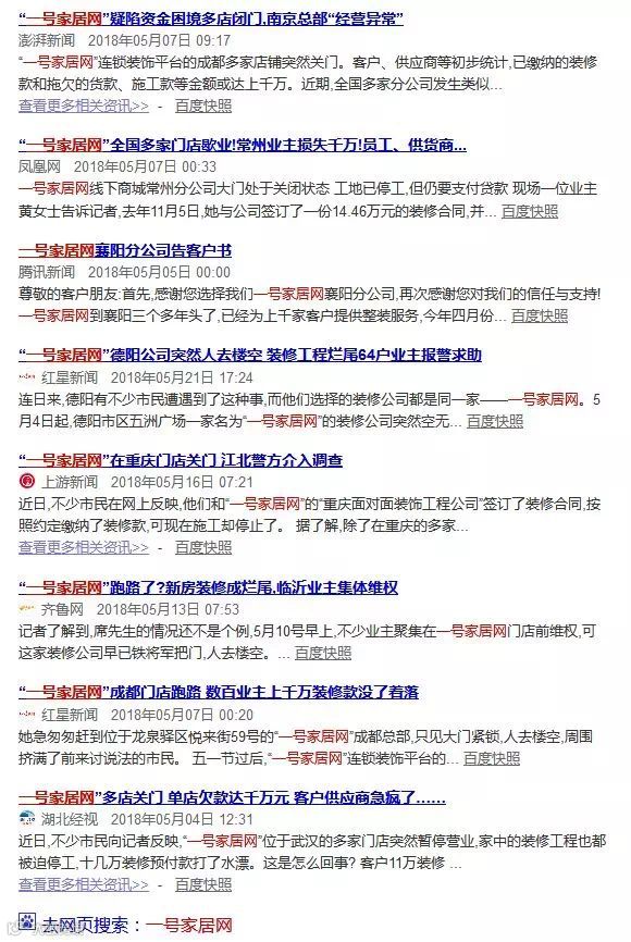 去年5月,总部设在南京的家装企业一号家居网突然关门,引发一些列连锁反应,常州、成都、德阳、临沂等地多处暴雷,经销商卷款潜逃让多地的工程烂尾。
