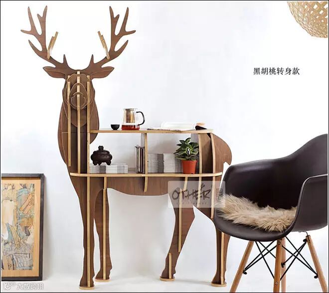 这款茶几从外观上看就非常有特点,像一只麋鹿,造型有转身款和正常款,区别一是鹿头的朝向不同,二是收纳格分别为两个和三个。此外,还有马、犀牛和猪的款式,造型都憨态可掬,很有趣。每一种款式都有黑、白、胡桃木色和浅原木色,适合各种风格的家装,这样造型独特的茶几放在家里,不仅可以起到收纳作用,也能作为装饰品。