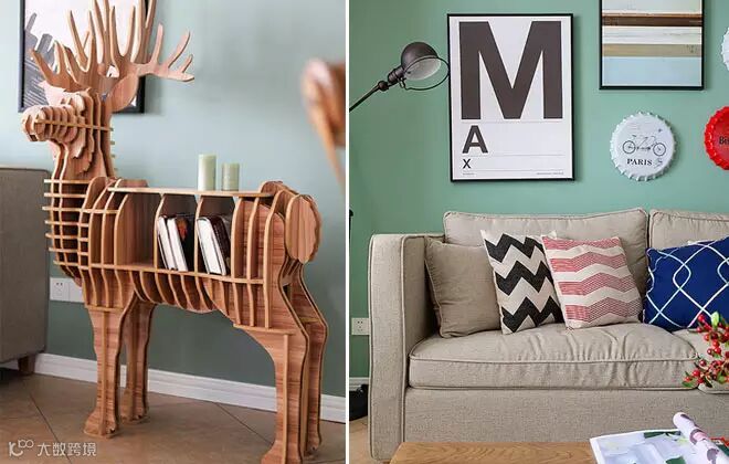这款书架,其实产品名字叫“转身鹿茶几”,脑补了一下这货出现在沙发前面的样子,略显尴尬啊。于是户主非常机智的把它放在沙发旁边当做书架+边几,同时,它这个有趣的造型也是个不错的装饰品。