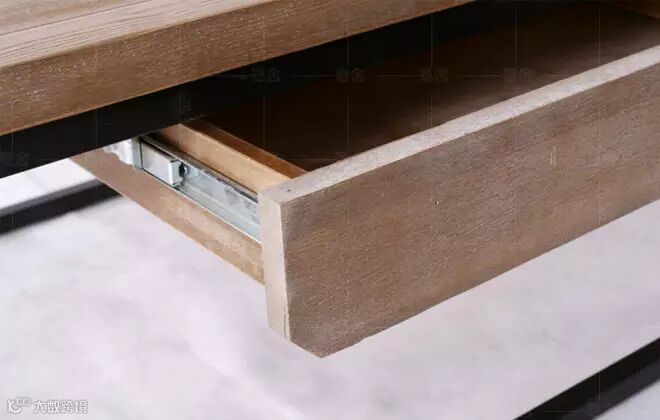 实木与铁艺的材质搭配,同样也是经典的美式家具款式。台面用的白蜡木,比较耐磨耐用。下方支撑则采用的是铁艺支架,承重能力好,而且用静电喷涂过,不易生锈。不过在储物功能方面,这款茶几不是特别强,仅在下方有一个抽屉,可以收纳一些小物品,适合储物需求不大的家庭。