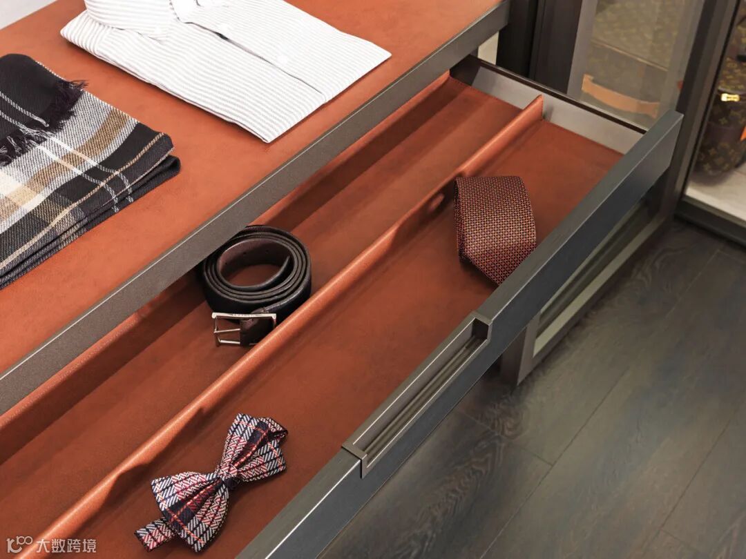 MisuraEmme在衣帽柜系统的设计中,运用了美拉德风格的核心色彩——棕色,结合精心挑选的天然原材料,将现代时尚和经典雅致完美兼容,为客户打造一个温馨浪漫的家居环境。