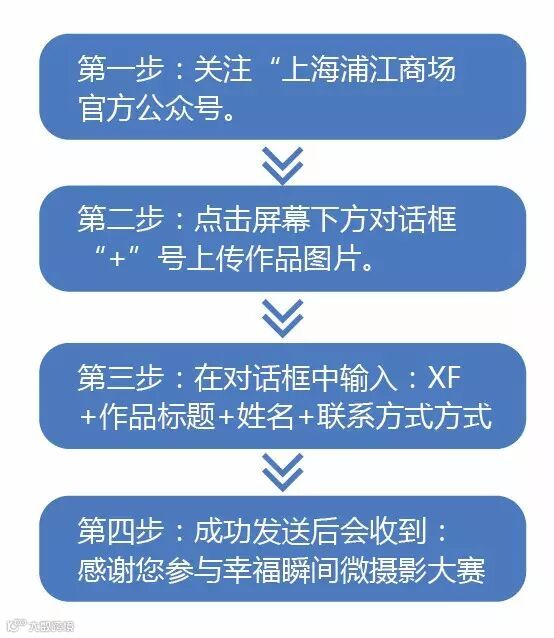 1、关注“上海浦江商场”官方微信,加为好友,在对话框中发图投稿。同时,附上拍摄时间、地点、图片标题,作者姓名和联系方式。