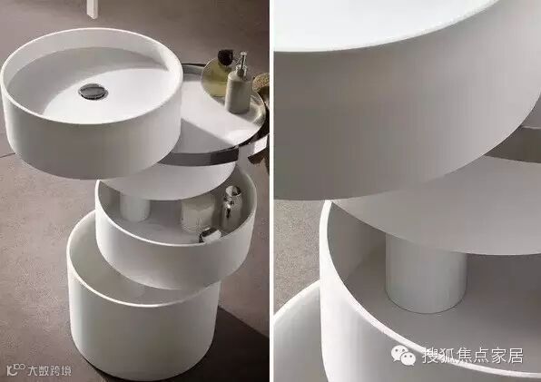 浴室柜太占地方?有了这款圆筒形台盆,洗漱、置物全解决。