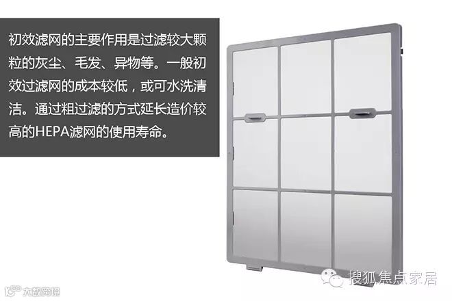 初效过滤网:初效过滤网的作用是空气净化器的第一层滤网,主要作用是过滤掉空气中颗粒较大的污染物,减少后面高效过滤网的工作压力。一般的净化器的初效过滤网大多选用价格较便宜或可以重复清洁的滤网,减少整体成本。