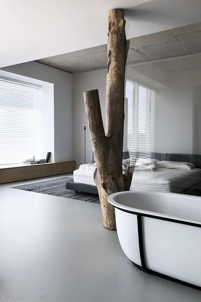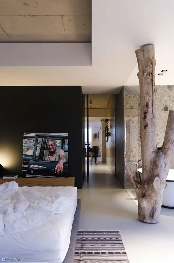 “碰撞”是这一空间的代名词,粗糙纹理与柔软触感的“碰撞”、现代家具与复古风格的“碰撞”、天然材料与科技家电的“碰撞”……,多种元素的融合交错蕴含着稳重内敛而又优雅和谐的力量。