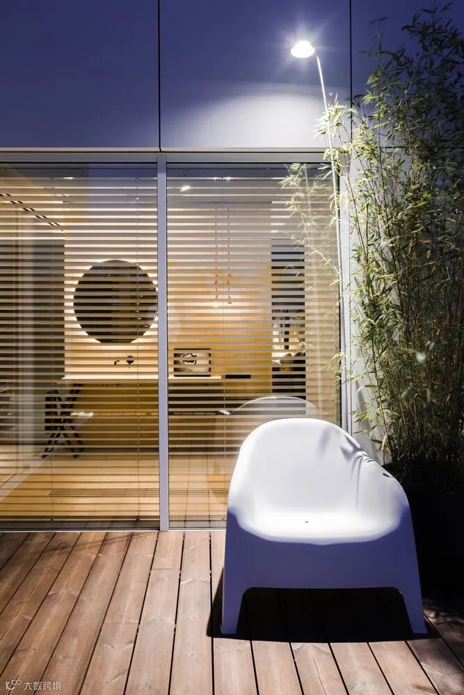 卧室被设计成一个独特而隐蔽的两人空间,结合了浴室和更衣室。开放式的浴室空间摆放了Agape的多款明星产品,简约艺术的设计和细腻舒适的质感为空间掀开了和谐温馨的一角。