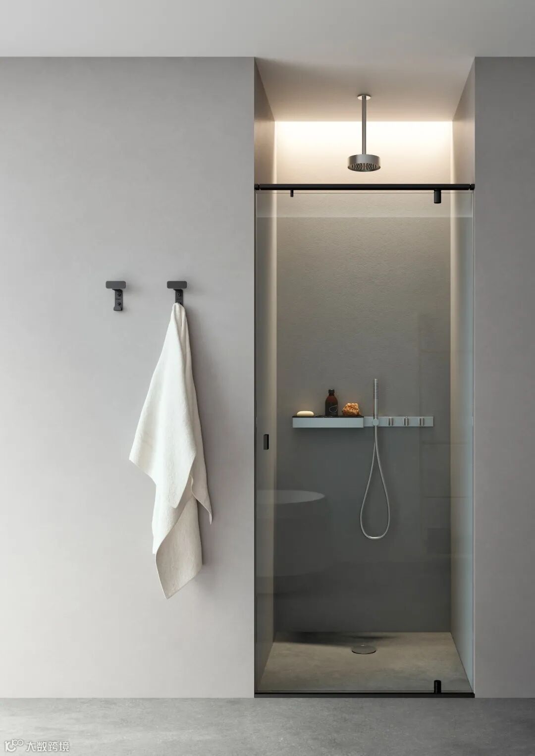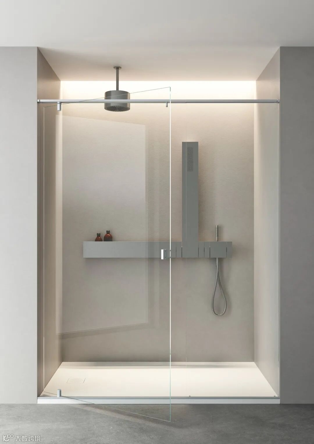 关于浴室空间玻璃材质的运用,意大利奢华卫浴品牌Agape给出了不一样的答卷。其设计推出了一个独立精炼而又极简大方的淋浴间方案——Plan a(A计划)。