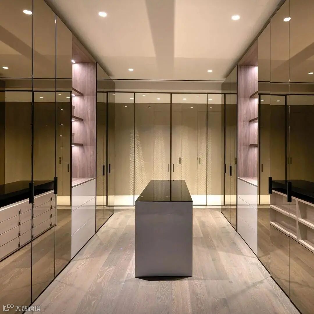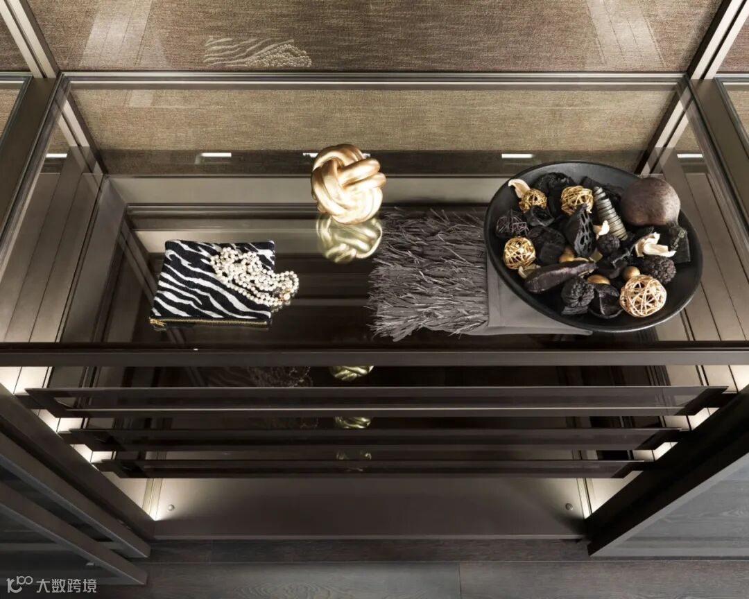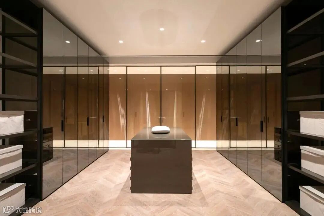 玻璃对于视觉美学的延拓,还体现在Palo Alto I-Box步入式衣帽间的打造之上。意大利系统家具领军品牌MisuraEmme将玻璃的通透与实木衣柜的理性相结合,呈现出流光溢彩的视觉效果。