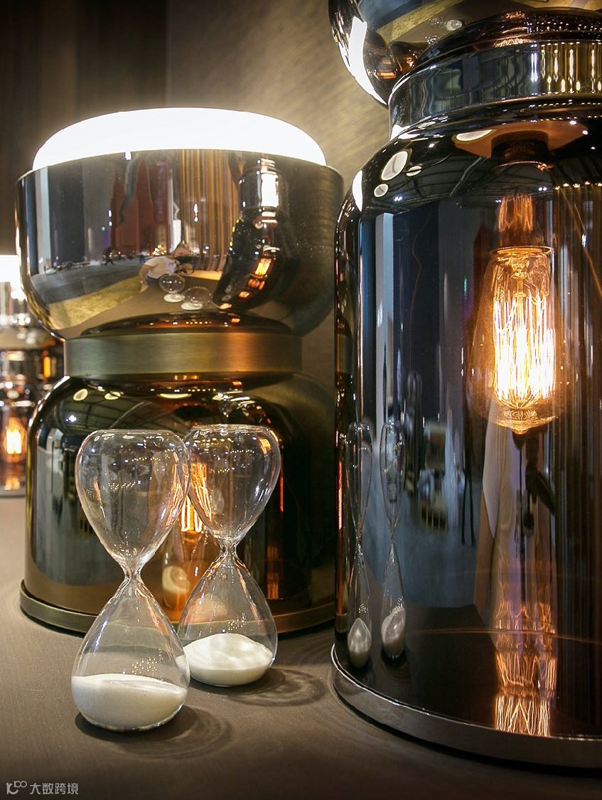 CLESSIDRA玻璃灯的设计灵感取自于沙漏,由上下两部分组成,上端是白色灯罩,下端是镜面玻璃灯罩。灯光在两种材质中的双重切换带来了意想不到的效果,“用灯光记录时间”,诉说着最浪漫的感性语言。