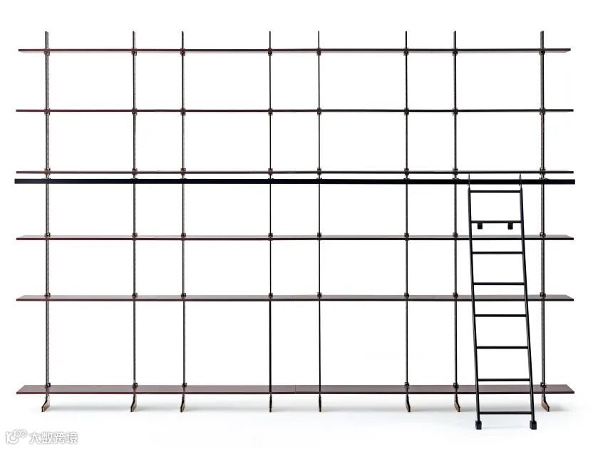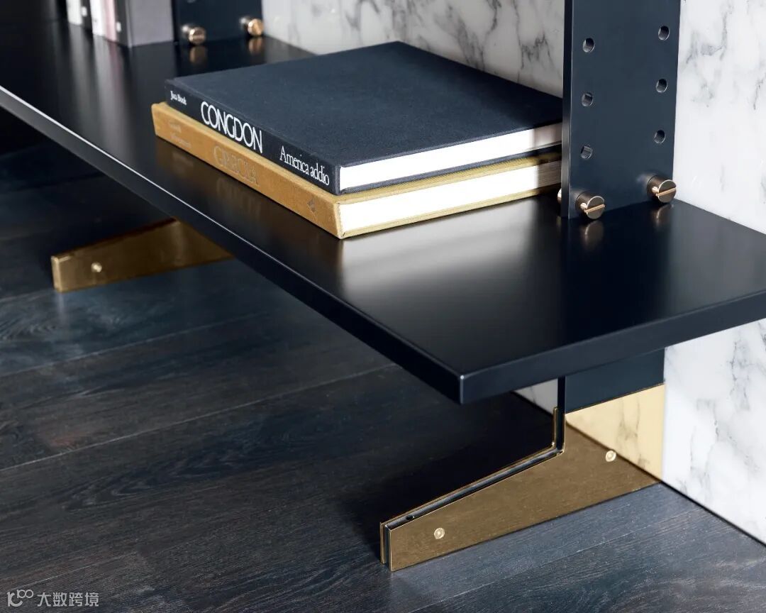 这款书柜是1949年的经典复刻之作,铝制直线型框架有着精准的40毫米间隔钻孔,搁板架可根据需求调整间隔大小。电镀合金底座和黑色漆面交相辉映,典雅大气。整个书柜没有背板,在视觉上打开了空间的格局,书籍陈列其上,为生活增添了一份仪式感。