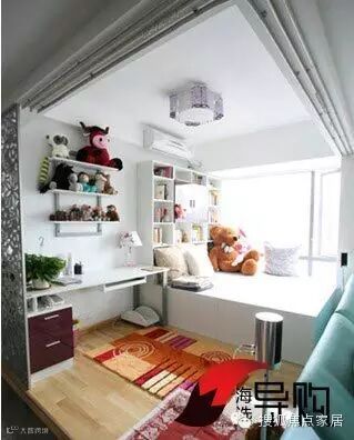 孩子的房间,是榻榻米的常用之地。榻榻米+书桌+书架一气呵成!