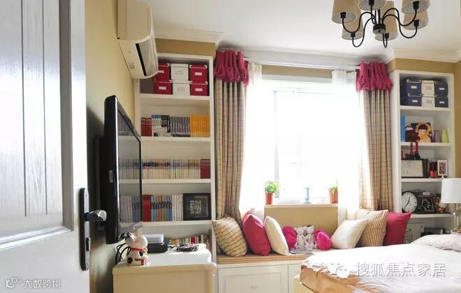 暖暖的阳光从窗子洒进来,窗子旁边还有个高高的书柜,坐在飘窗上看书也是一种享受。