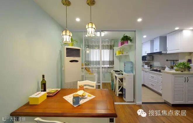 闲暇的日子请朋友来家里小聚,这样的餐厅,也会心里暖暖的吧。敞开式厨房的设计,进门处的吧台是鞋柜也是一个半隔断,让自然光线融入屋里。